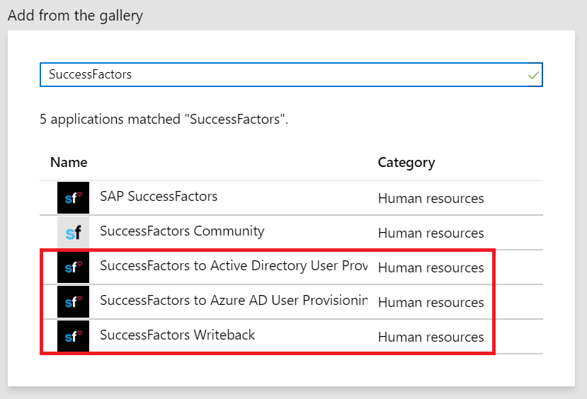 In the Enterprise App gallery, there are three new pre-integrated applications designed to meet your requirements around SuccessFactors integration.